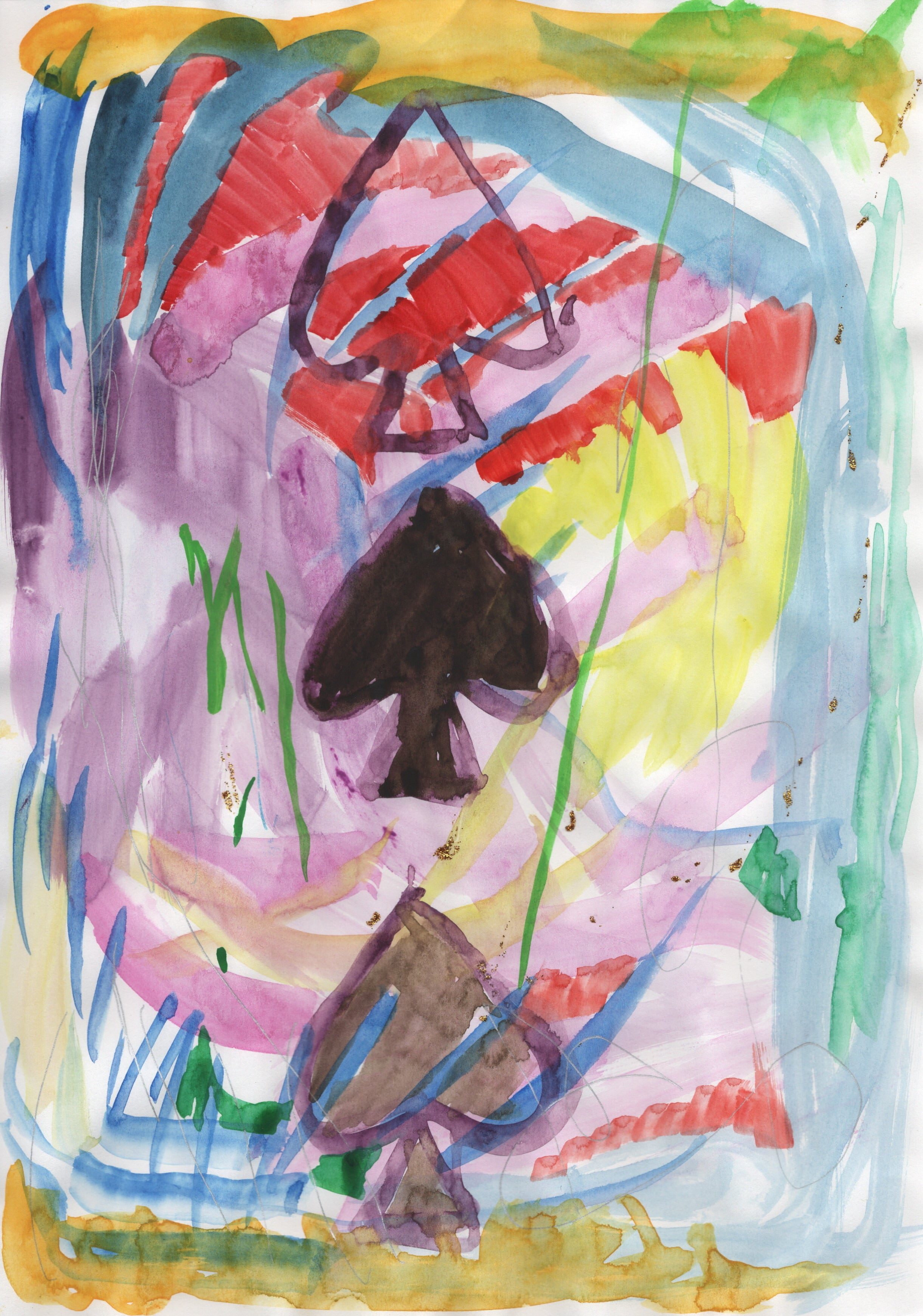 水彩、ペン、紙